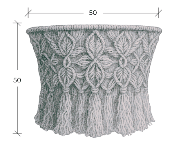 Esta lámpara surge del entrelazo de Rosa y Mafe. El tejido superior, con hilaza de algodón es entrelazada en patrones que envuelven la caída de la hilaza almidonada, refleja la firmeza y estructura de Rosa. Las caídas de fibras suaves evocan la sensibilidad de Mafe. Juntas, sus visiones crean un equilibrio perfecto donde la luz encuentra su camino.