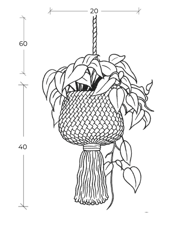 Este elegante macetero, inspirado en el arte de lo natural, está tejido a mano con hilaza de algodón entintada en tonos sepia. Su diseño de nudos cuadrados repetitivos envuelve la maceta como una cálida canasta, destacando un delicado equilibrio entre funcionalidad y belleza. El toque distintivo lo aporta su pompón de 20 cm, una pieza única que añade carácter y movimiento. Perfecto para realzar cualquier espacio, este macetero es el detalle artesanal que conecta lo orgánico con lo sofisticado.